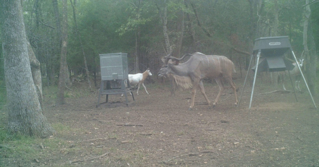 The C5 exotic hunting ranch features a diverse mix of mature hardwoods, dense brush lines, natural creek systems, and rolling elevation changes that create ideal conditions for a wide range of exotic game. These natural features influence daily movement patterns, encourage consistent daytime activity, and provide hunters with organic opportunities. Most days start and end over feeders from blinds unless the guide believes there is a better option for a given target animal. Safari-style hunts and spot and stalk are typically done mid-day and after dark, outside of traditional “ambush” or blind and feeder style hunting times.